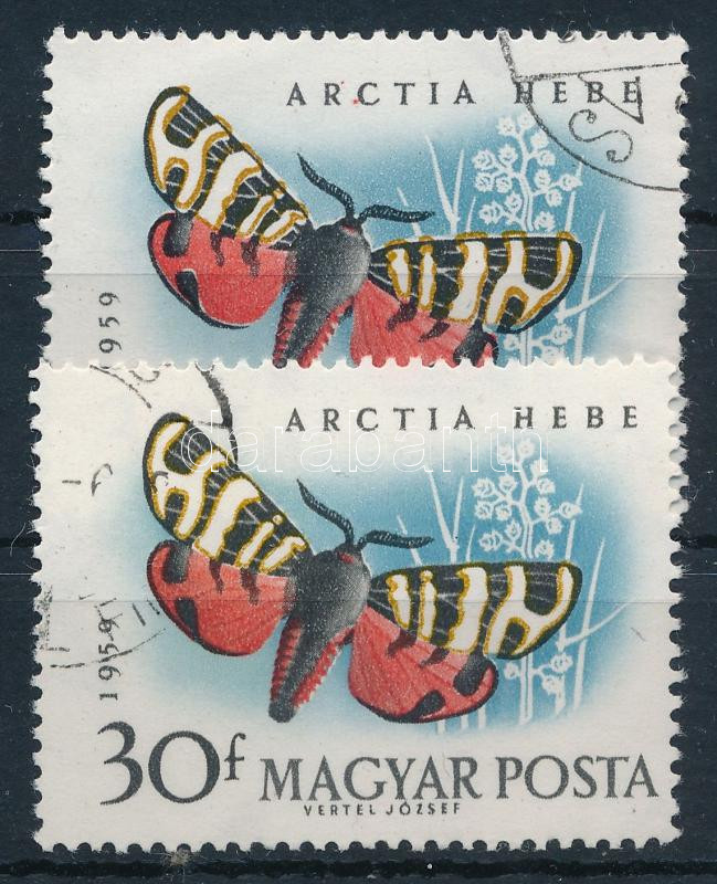 1959 Lepke (I.) 30f eltolódott barna színnel + az "ARCTIA" szóban piros pöttyök + támpéldány