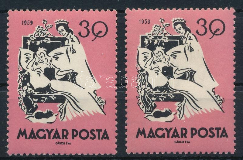 1959 Mese (I.) 30f lemezhibás bélyeg (hiányzó fej feletti levél, rövid ujjak, szakadt vonal) + támpéldány