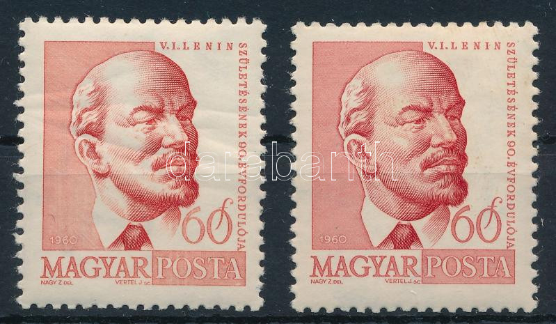 1960 Arcképek II. 60f Lenin "fehér nyak" lemezhibával + támpéldány (törések / folds)