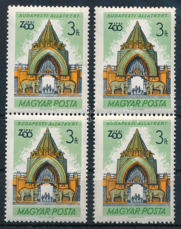 1961 Budapesti Állatkert (I.) 3Ft függőleges pár lefelé tolódott narancssárga színnel + támpéldány