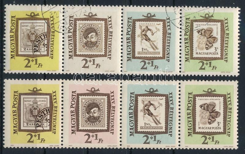 1962 Bélyegnap (35.) összefüggő csík a barna szín felfelé tolódva (évszám és a tervező neve), MBK 1918 halvány rózsaszín alapnyomattal, MBK 1919 poloska + támpéldány