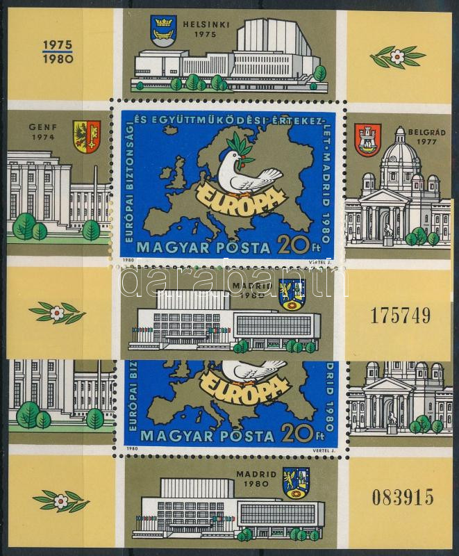 1980 Európai biztonsági és együttműködési értekezlet V. vékony és vastag sorszámú blokk