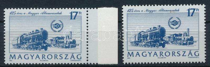 1993 125 éves a MÁV egy lyuksorral rövidebb ívszéli bélyeg + támpéldány