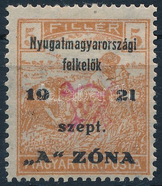 Nyugat-Magyarország (II.) 1921 Arató 5f (MBK 11) Bodor vizsgálójellel (** 32.000)