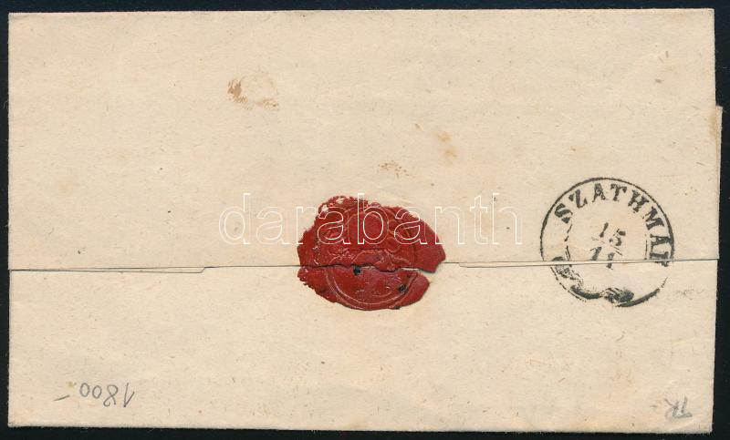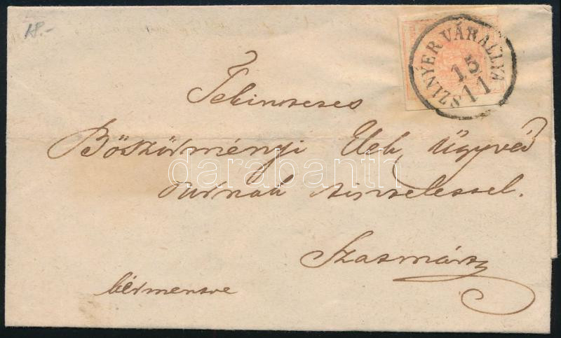 1857 3kr fakóvörös levélen "SZINYÉR VÁRALLYA" - "SZATHMÁR"