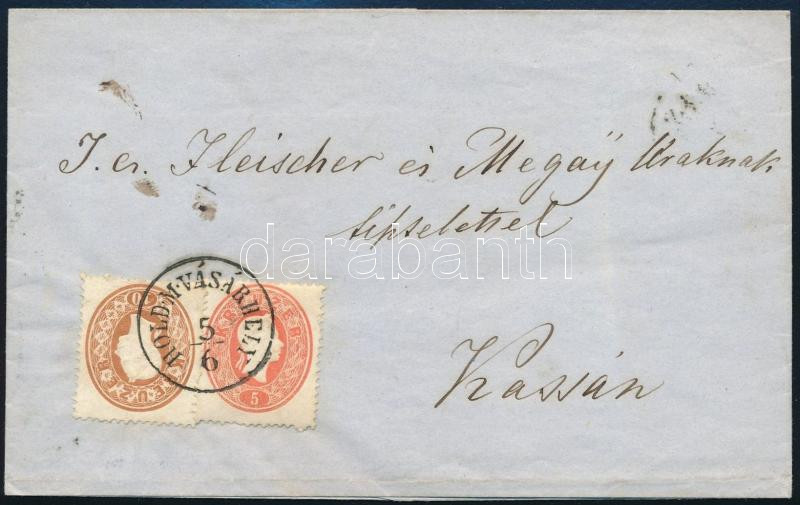 1861 5kr + 10kr levélen "HOLD.M.VÁSÁRHELY" - Kassa