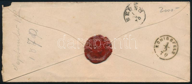 1870 5kr piros, levélen "DEBRECZEN" - "BRÜNN" - "KÖNIGSFELD"