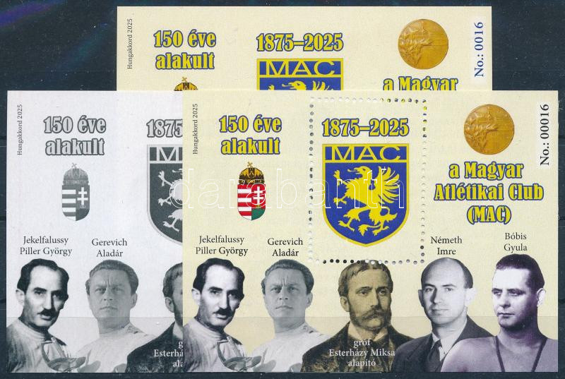 2025 150 éves a MAC Magyar Atlétikai Club 3 db-os emlékív garnitúra azonos (No. 0016) sorszámmal
