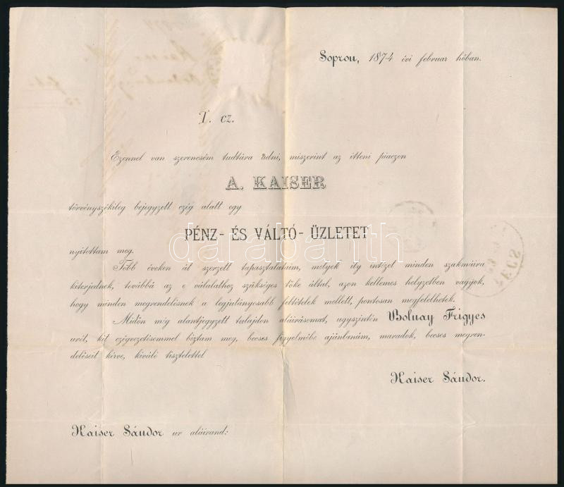 1874 2kr nyomtatványon "SOPRON / DÉLUTÁN"