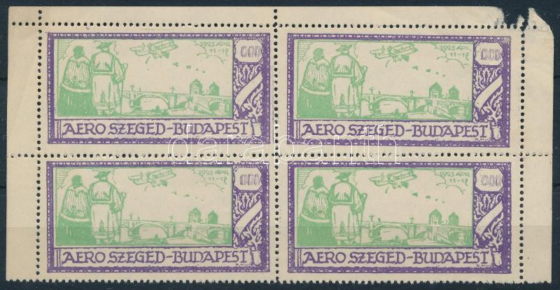 1925 Aero Szeged-Budapest légi járat 1000K levélzáró ívszéli négyestömb
