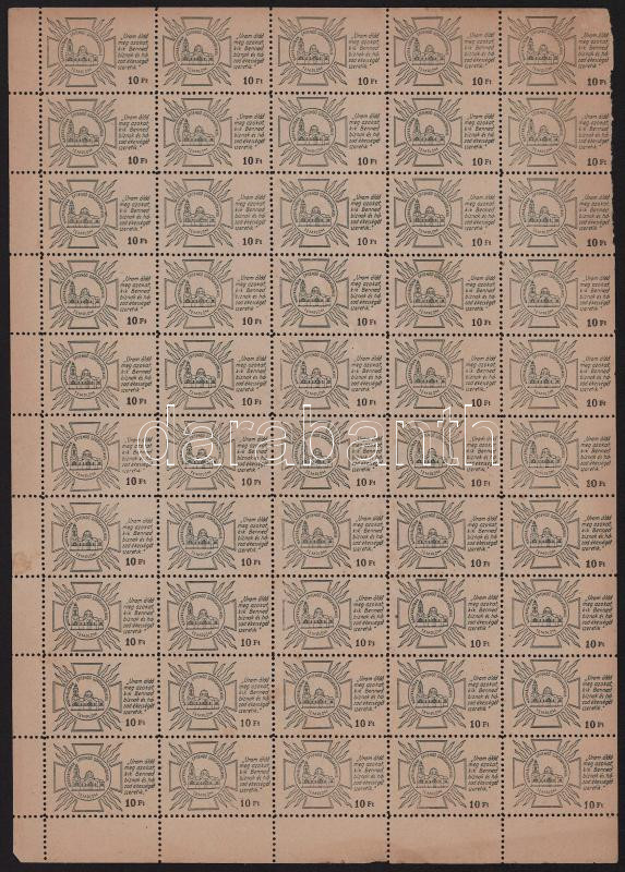 Nagykállói görögkatolikus templom javára adománybélyeg 1ft és 10ft teljes 50-es ívekben