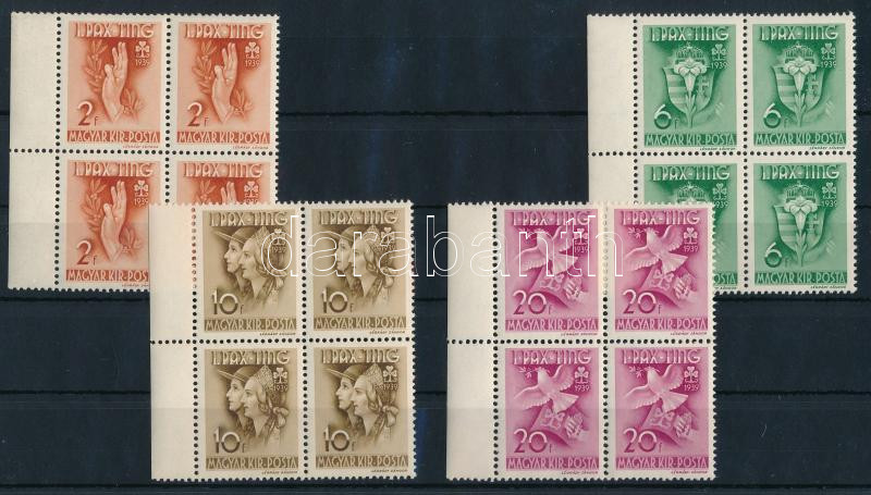 1939 Pax-ting sor ívszéli négyestömbökben, a 2f az évszámban pont lemezhibával (8.000)