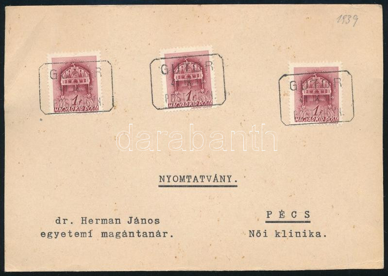 1941 Nyomtatvány "GUTOR" postaügynökségi bélyegzéssel
