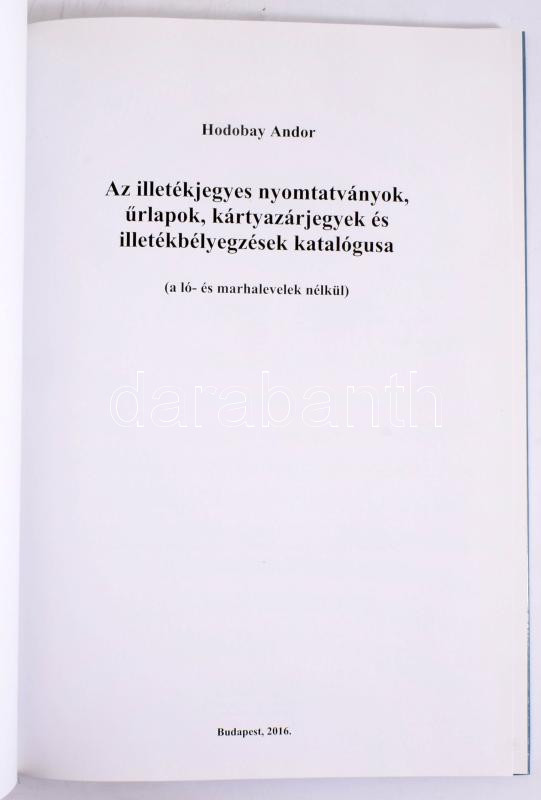 Hodobay Andor: Az illetékjegyes nyomtatványok, űrlapok, kártyazárjegyek és illetékbélyegzések katalógusa (a ló- és marhalevelek nélkül). Bp., 2016, [Hodobay Bt.], 140 p. Kiadói kartonált papírkötés. Megjelent 80 példányban.