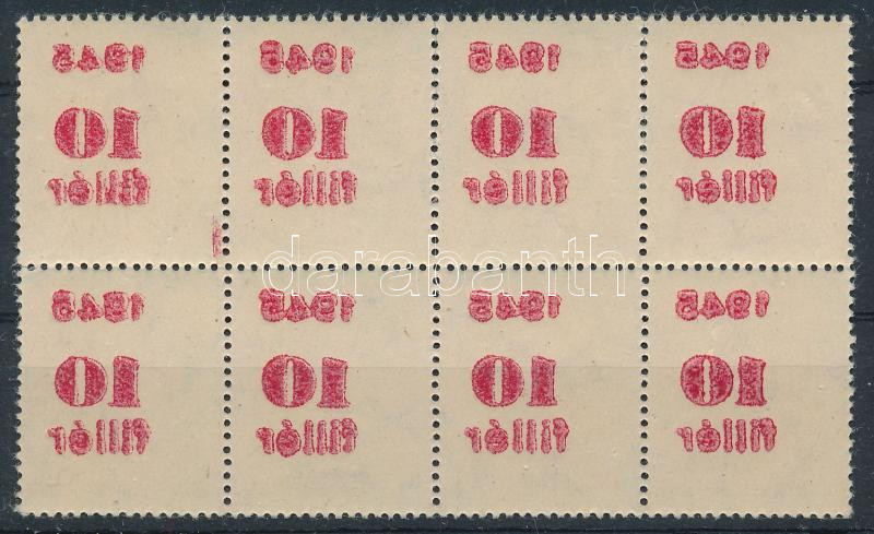 1945 Kisegítő portó 10f/2f 8-as tömbben, a piros felülnyomás gépszínátnyomatával