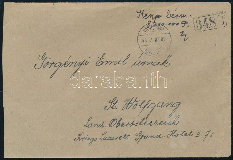1946 (14. díjszabás) Levél Ausztriába 8.000.000P készpénzes bérmentesítéssel "VAJDÁCSKA"