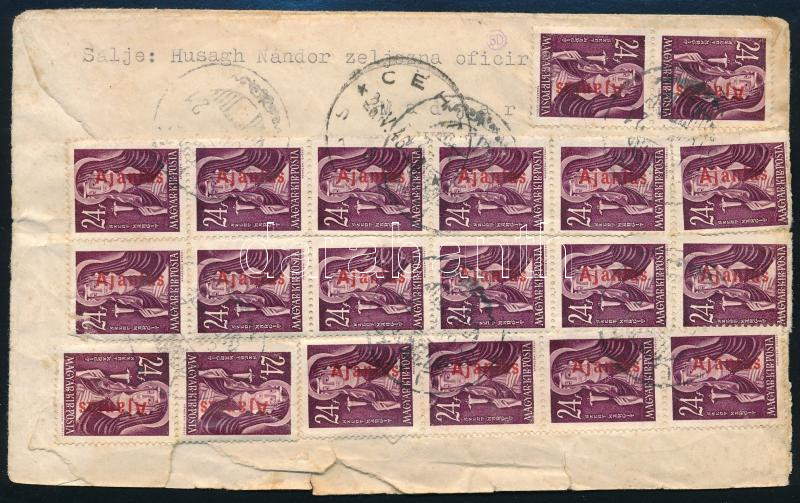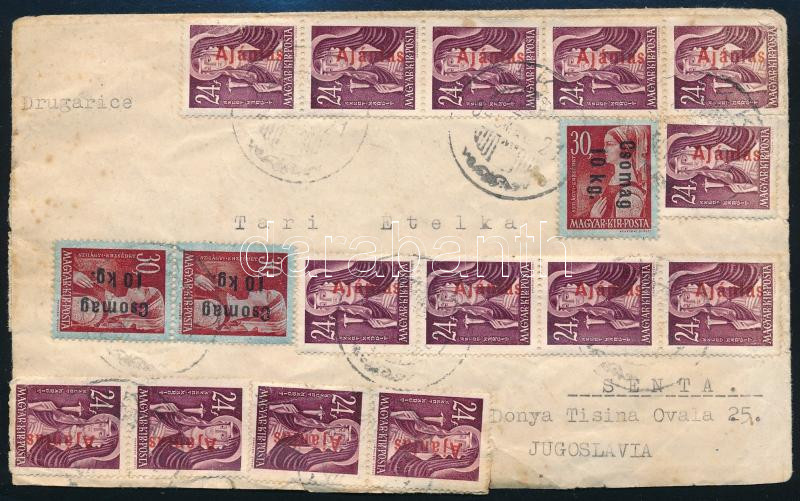 1946 (16. díjszabás) Levél Jugoszláviába 34 x Ajánlás + Csomag 10 kg bélyegekkel bérmentesítve
