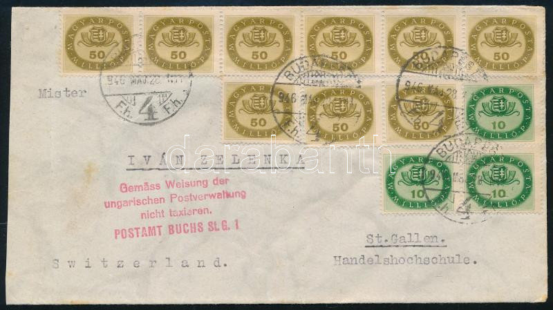 1946 (17. díjszabás) Svájcba küldött levél 480.000.000P bérmentesítéssel