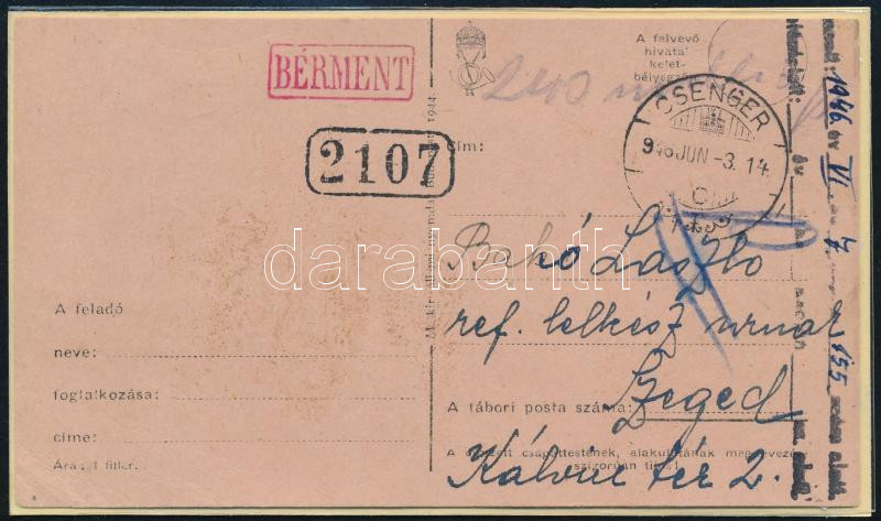 1946 (18. díjszabás) Levelezőlap készpénzes bérmentesítéssel Csengerről Szegedre