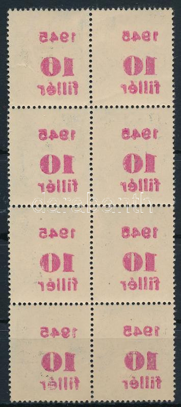1946 Betűs TI.2./10f/4f 8-as tömbben, a piros felülnyomás gépszínátnyomatával