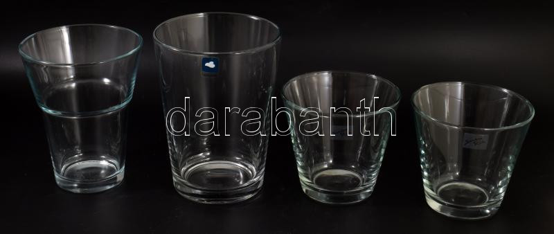 4 darab modern üveg virágtartó, közte jelzett, hibátlan, m: 20 cm alatt