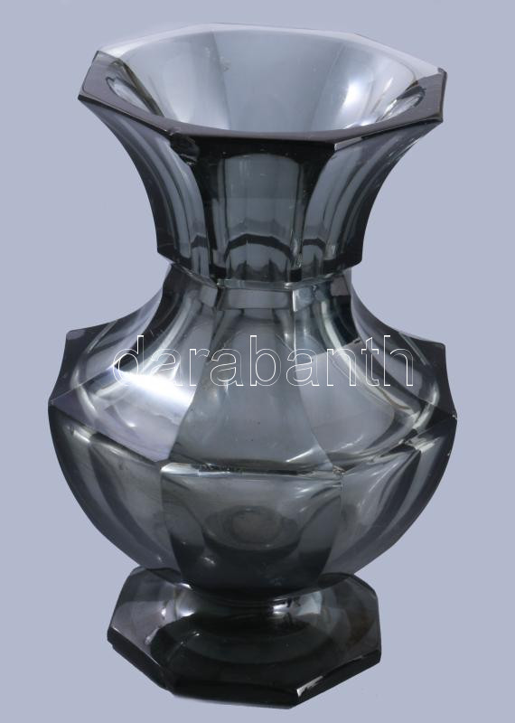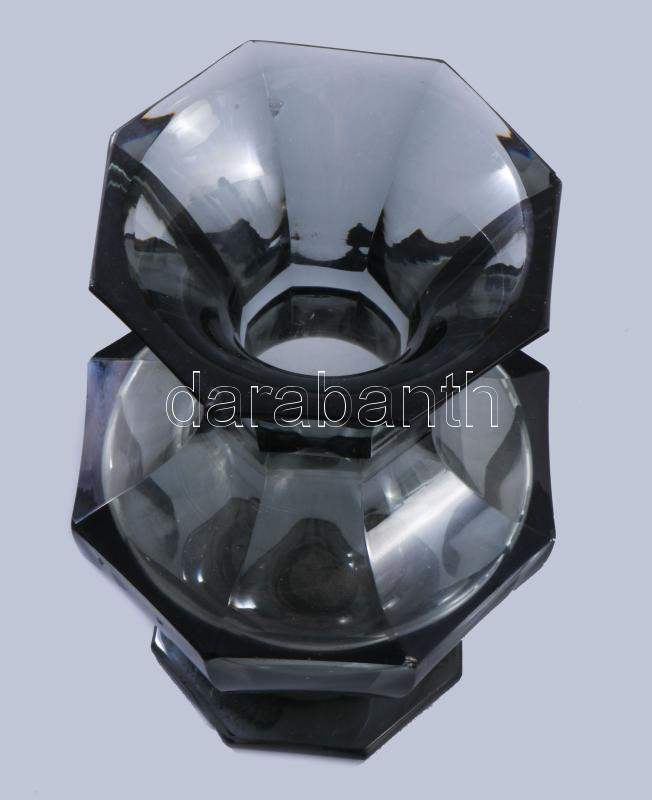 Moser jelzéssel füstszínű váza, lepattanással, m: 15,5 cm
