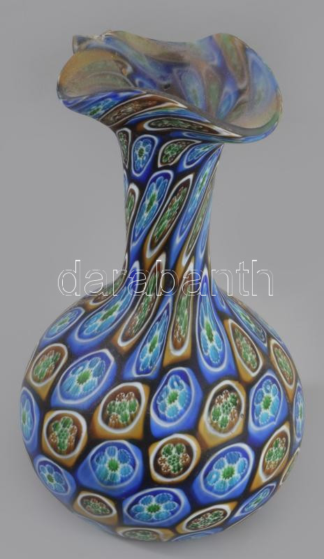 Murano millefiori váza, sérüléssel, repedéssel, m: 17 cm
