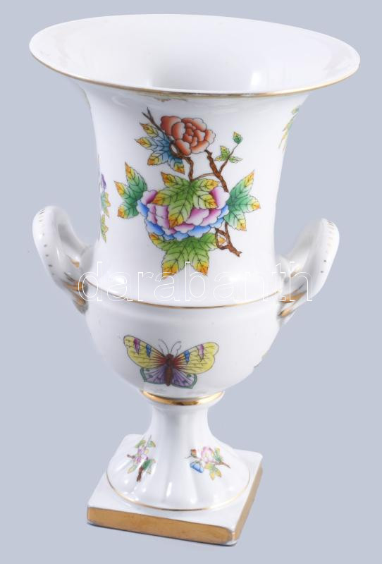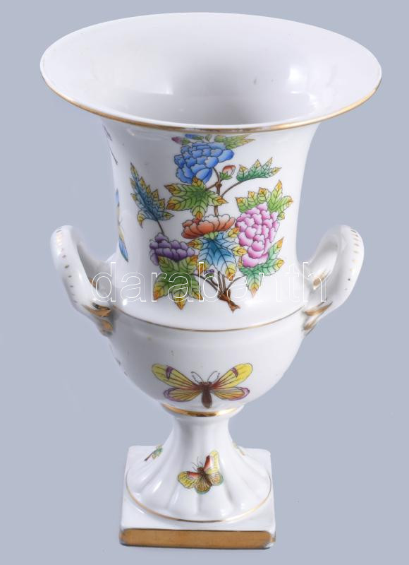 Herendi Viktória mintás urna váza. Kézzel festett, jelzett, aranyozáson kis kopással, m: 24,5 cm