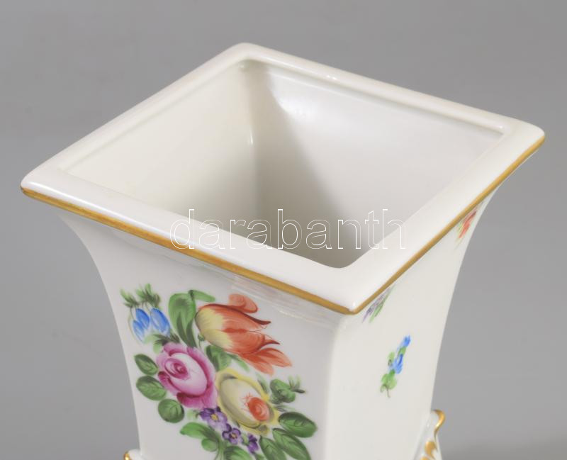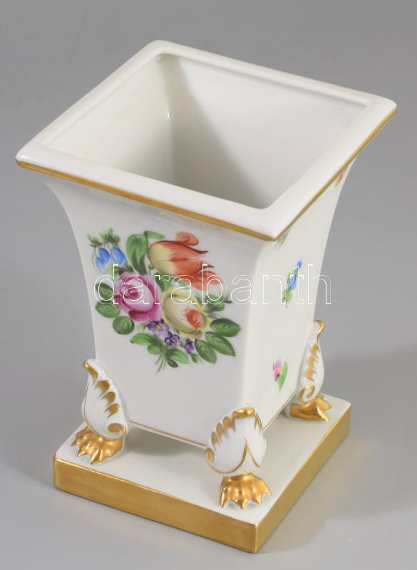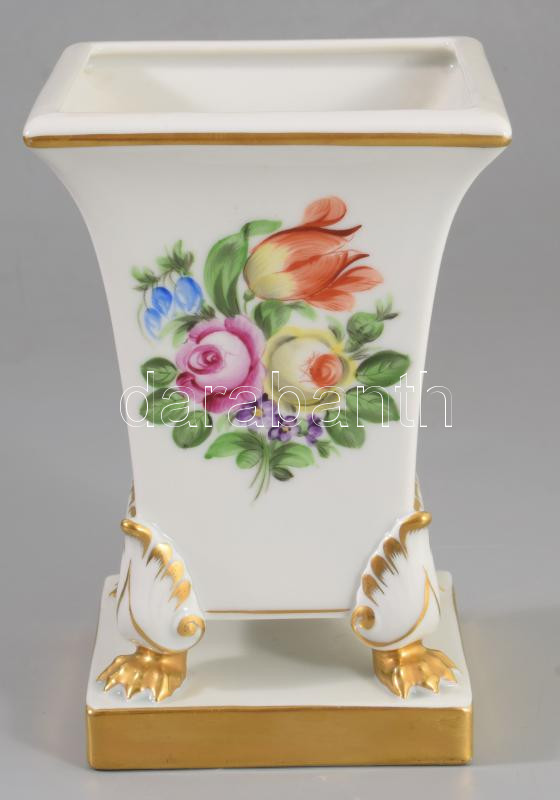Herendi virágmintás talpas váza Kézzel festett, jelzett , hibátlan m: 14 cm