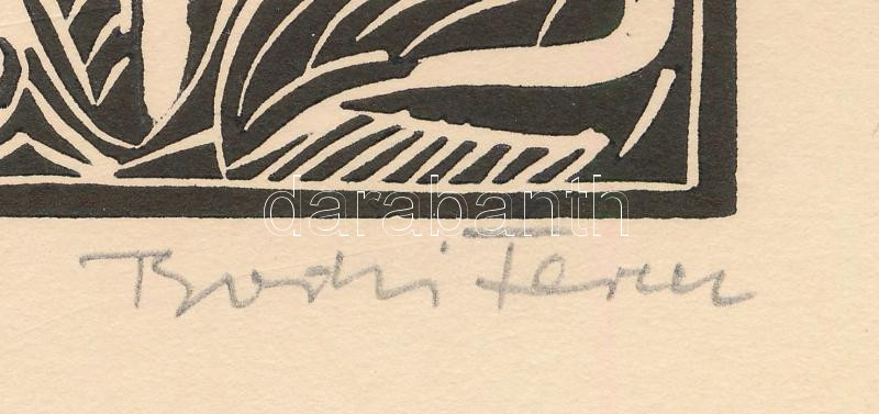 Beschreibung: Bodri Ferenc (1943-2021): Üvegházban. Linómetszet, papír, jelzett, 30x20 cm