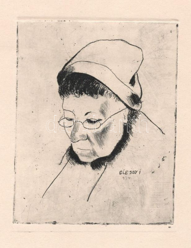 Élesdy István (1912-1987): Női arckép, 1934. Rézkarc, papír, jelzett a... https://www.darabanth.com/de/517-Gemalde-Plakat-ex-libris-Auktion/521.0/Gemalde-und-Grafiken/Gemalde-und-Grafiken~8/Elesdy-Istvan-1912-1987-Noi-arckep-1934-Rezkarc-papir-jelzett-a-karcon-11x8-5-cm~II3507303
