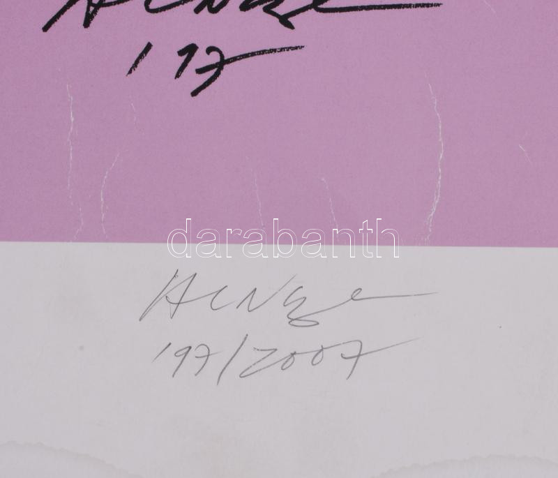 Beschreibung: Hencze Tamás (1938-2018): Collage, Róma, '97/2007. Szitanyomat, papír, jelzett. Hencze Tamás autográf ajánlásával. Törésnyomokkal. Lapszéli ázásnyomokkal és apró szakadással. 48,5x38 cm