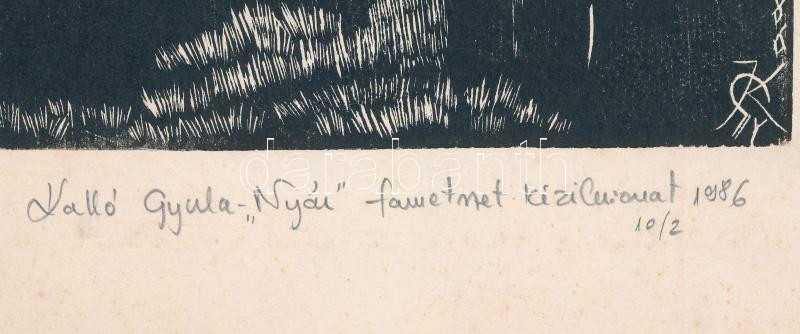 Kalló Gyula (?-): Nyár, 1986. Fametszet, papír, kézilevonat. Jelzett. ... https://www.darabanth.com/de/517-Gemalde-Plakat-ex-libris-Auktion/521.0/Gemalde-und-Grafiken/Gemalde-und-Grafiken~8/Kallo-Gyula-Nyar-1986-Fametszet-papir-kezilevonat-Jelzett-Szamozott-102-Kartonon~II3506013