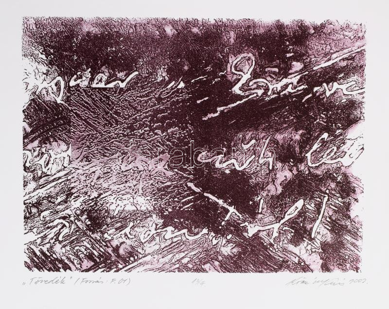 Beschreibung: Kőmíves István (1949-2007): Töredék. Litográfia, papír, jelzett, 13/4 számozással. 20,5x27 cm