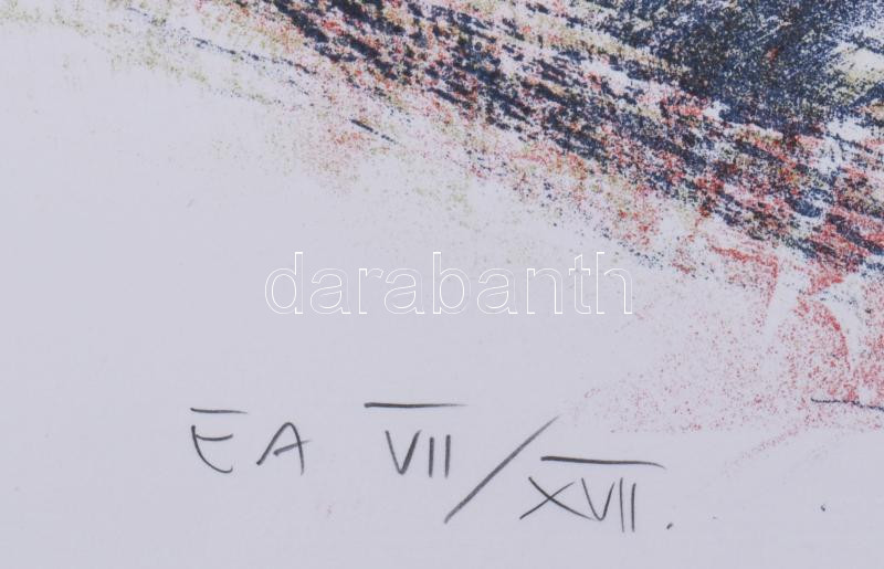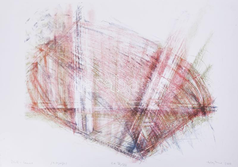 Beschreibung: Tolnay Imre (1968-): Döntés-levonat, 2000. Litográfia, papír, jelzett, művészpéldány EA VII/XVII számozással. 48x60 cm