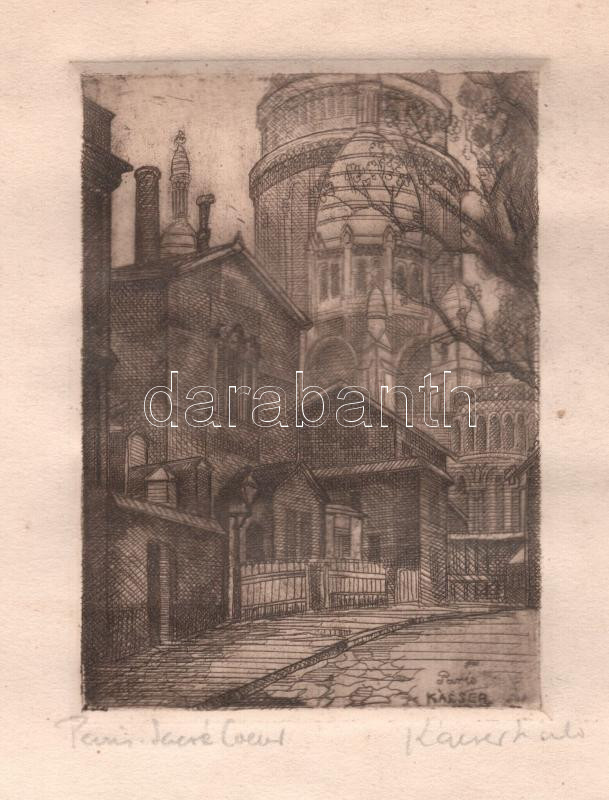 Kaeser vagy Kaiser jelzéssel: Párizs, Sacré Coeur. Rézkarc, papír, lap széle sérült. 13,5x9,5 cm