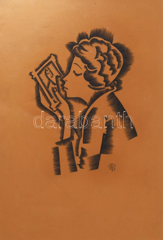 Molnár C. Pál jelzéssel: Vágyakozás. Ceruza, papír. 50x32,5 cm