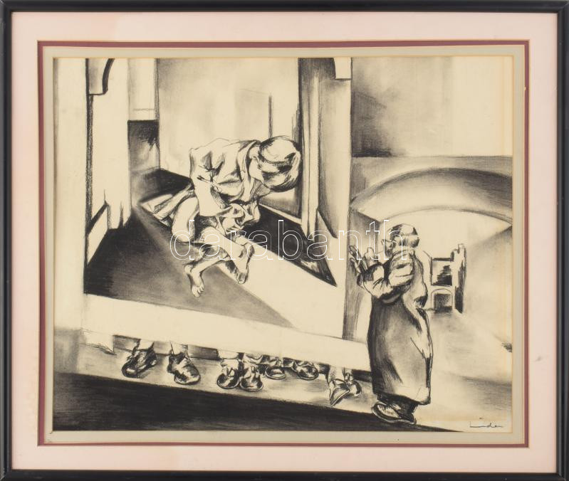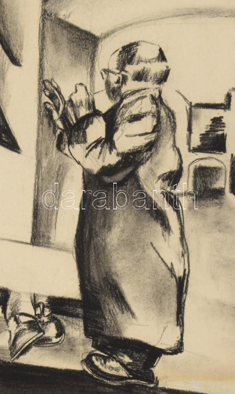 Olvashatatlan jelzéssel: Jelenet. Szén, papír. Fakeretben, 37×45 cm