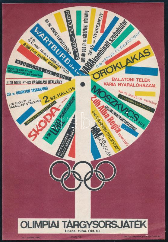 1964 Olimpiai tárgysorsjáték kisplakát 17x24 cm https://www.darabanth.com/de/517-Gemalde-Plakat-ex-libris-Auktion/521.0/Gemalde-und-Grafiken/Plakat~7/1964-Olimpiai-targysorsjatek-kisplakat-17x24-cm~II3506228