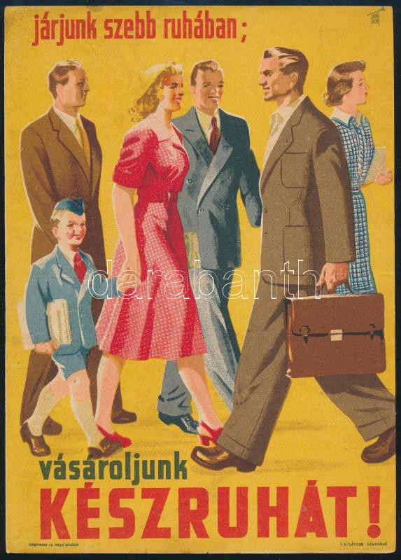 cca 1960 Járjunk szebb ruhában; vásároljunk készruhát! villamosplakát,... https://www.darabanth.com/de/517-Gemalde-Plakat-ex-libris-Auktion/521.0/Gemalde-und-Grafiken/Plakat~7/cca-1960-Jarjunk-szebb-ruhaban-vasaroljunk-keszruhat-villamosplakat-24x17-cm~II3508234