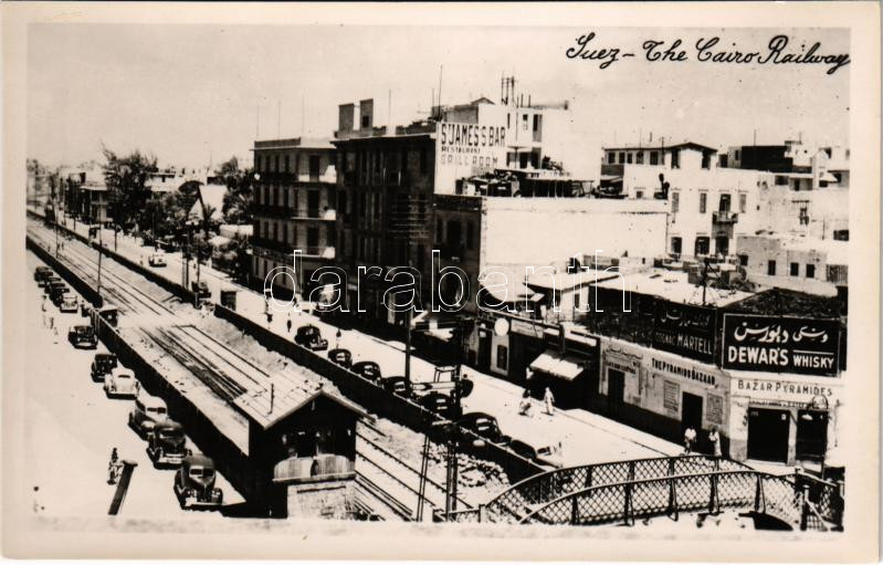 1957 Suez, The Cairo Ralway, automobiles, S'James's Bar, Restaurant an... https://www.darabanth.com/de/518-Auktion-Philatelie-Postkarten-Numismatik-Kunstwerke-Bucher-Schreibwaren-Schmuck/524.0/Ansichtskarten/Agypten~762/1957-Suez-The-Cairo-Ralway-automobiles-SJamess-Bar-Restaurant-and-Grill-Dewars-Whisky-~II3521739