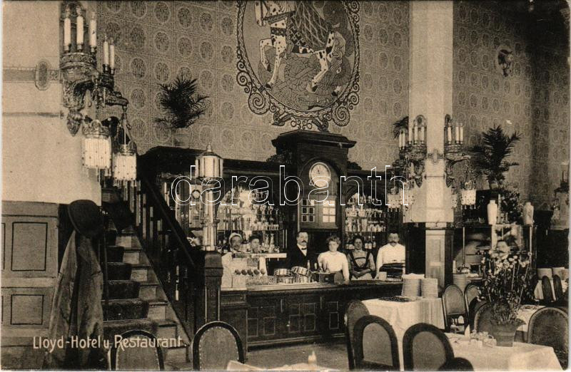 1911 Hamburg, Lloyd Hotel u. Restaurant. Steintorwall 7-8, Spitalerstrasse 1-5. Inh. Joh. Schlee / hotel and restaurant, interior with the staff (EK)