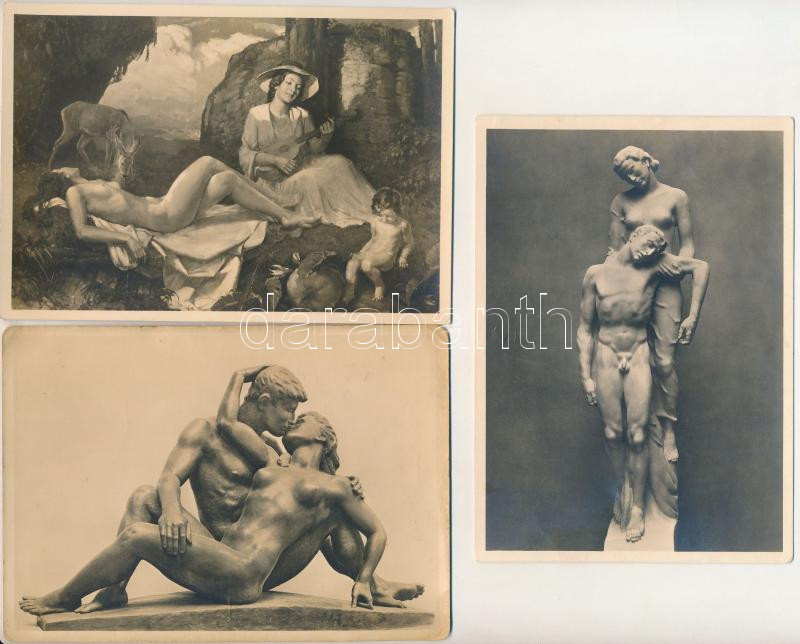 7 db RÉGI erotikus képeslap a müncheni "Haus der Kunst" náci művészek alkotásaiból / 7 pre-1945 German erotic nude lady postcards, NSDAP Nazi propaganda