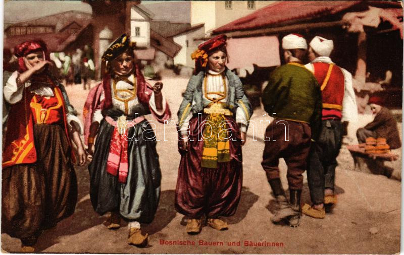 Bosnische Bauern und Bäuerinnen. Verlag A. Thier / Bosnian folklore (Rb)