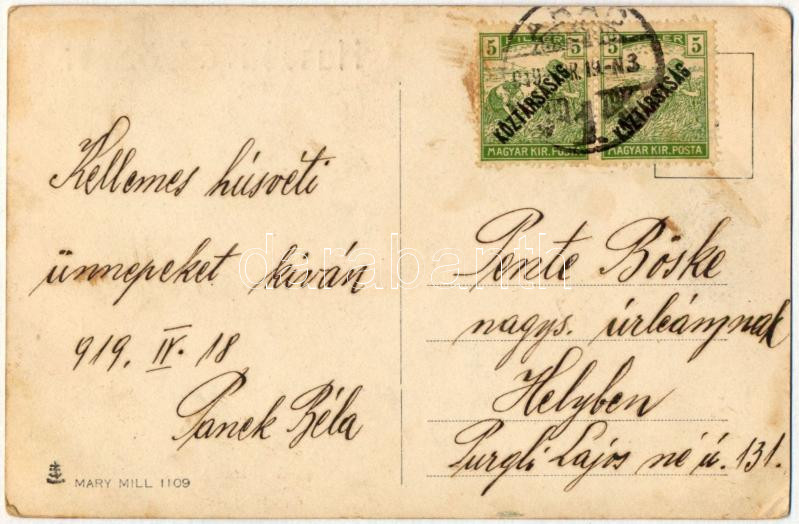 1919 Húsvéti üdvözlet / Easter greeting art postcard with lady and flock of sheep s: R. Kratky (EK)