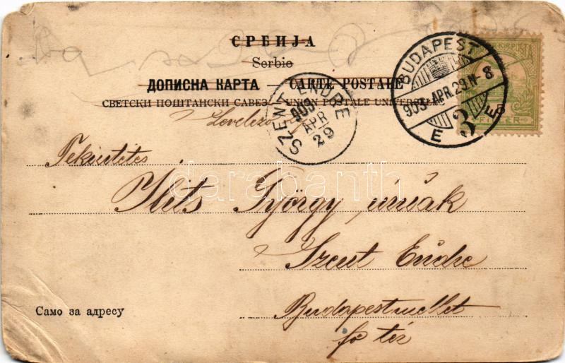 1903 I. Sándor szerb király és Draga királyné, címer, Tempus et Meum Jus / Serbian King Alexander I and Queen Draga, coat of arms (EM)