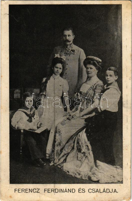 1914 Ferenc Ferdinánd és családja, a meggyilkolt trónörököspár gyermekeivel. Jurányi és Társa kiadása / Archduke Franz Ferdinand of Austria and Sophie, Duchess of Hohenberg with their children (EB)