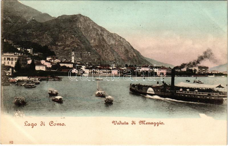 Lago di Como, Veduta di Menagio / view, LARIANO steamship (cut)