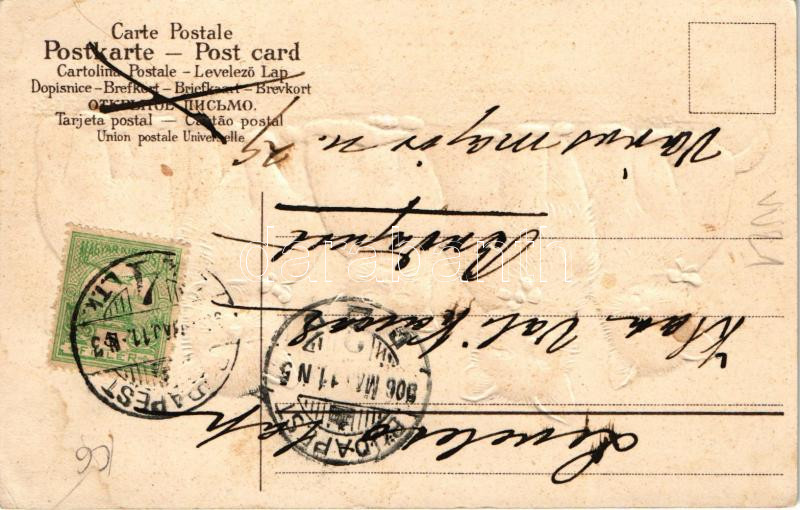 1906 Macskák / cats. Emb. litho (lyuk / pinhole)