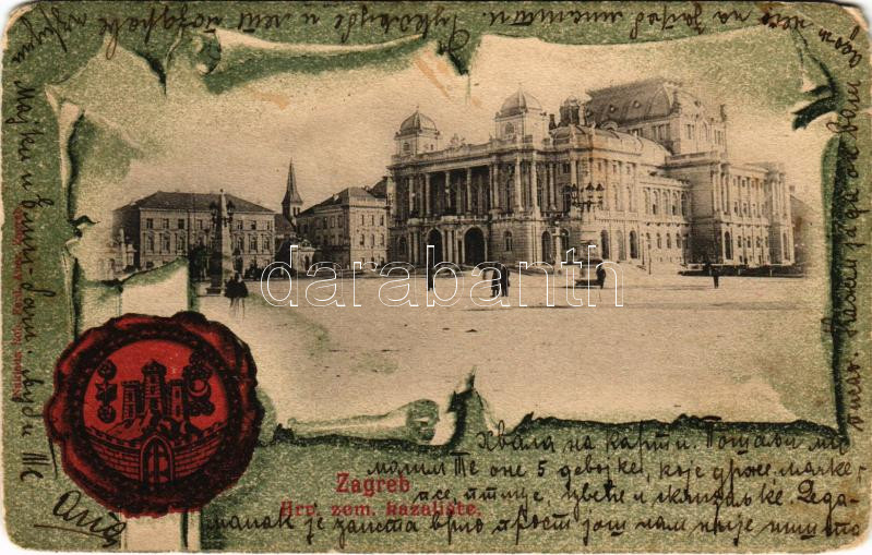 1902 Zagreb, Hrv. zem. kazaliste. Rob. Ferd. Auer / színház / theatre. Art Nouveau coat of arms (EM)